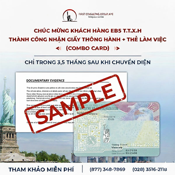 First Consulting Group xin gửi lời chúc mừng đến quý khách T-T-X-H về việc nhận được Combo Card (Thẻ Hồng) chỉ trong 3,5 tháng sau khi chuyển diện! Đây là một cột mốc quan trọng trong hành trình định cư Mỹ diện đầu tư EB5, và chúng tôi rất tự hào được đồng hành cùng quý khách trong suốt quá trình này.